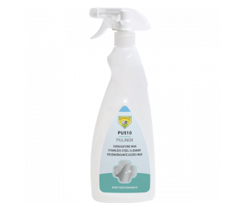 Pulinox: limpa e higieniza superfícies em aço inox e cromadas. Deixa uma camada protectora que ajuda a reduzir as estrias futuras. Sem abrasivos. O “filme” protector protege as superfícies tratadas contra manchas, poeira, marcas e corrosão. Não contém substâncias que possam danificar, manchar ou estragar as superfícies tratadas. O prático frasco Trigger, com o produto pronto para uso, faz de Pulinox o ideal para a limpeza das superfícies de aço inox de cozinhas, frigoríficos, equipamentos vários, portas de elevadores, balcões de bar e alimentares.